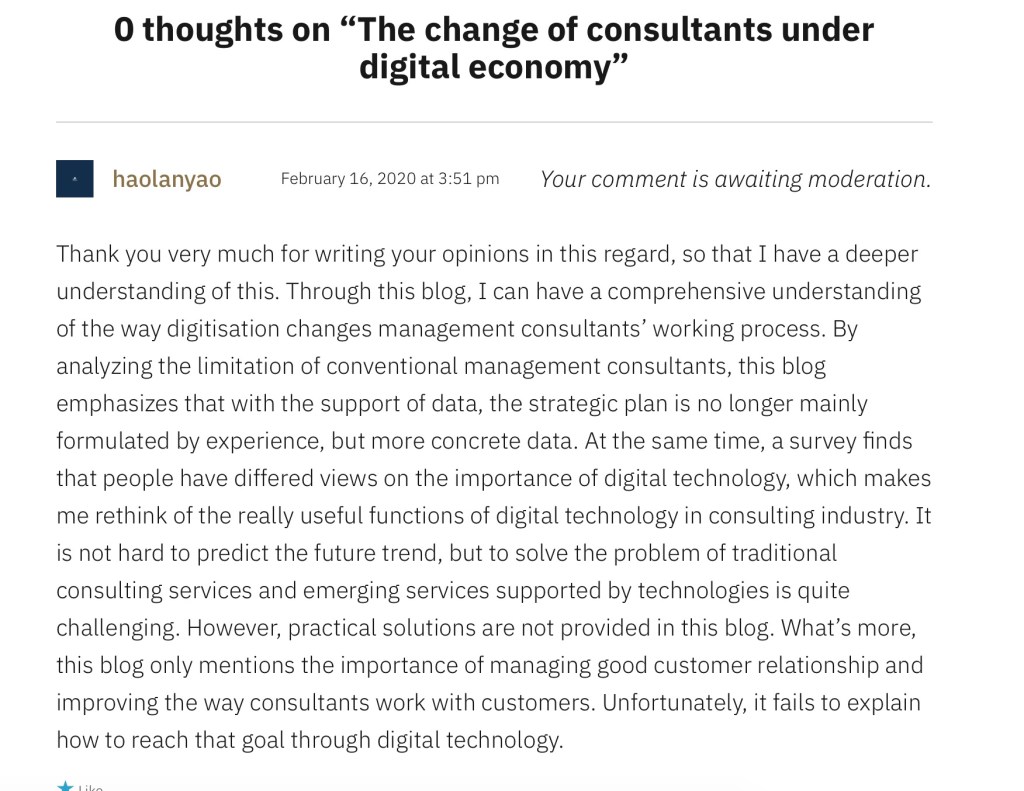 At the outright, the course programme is well structured and paced and has helped me learn what has been taught. It has also been informative, especially drawing examples and references of business enterprises, their digital strategies, and current activities.